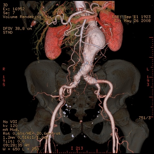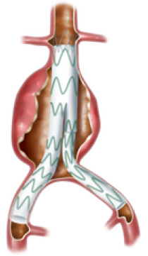 Minimally invasive repair of Aortic Aneurysms with a large Stent is the method preferred in this Practice.